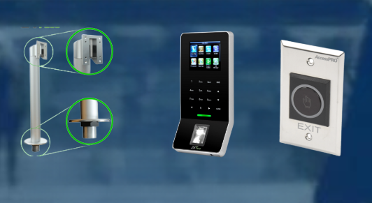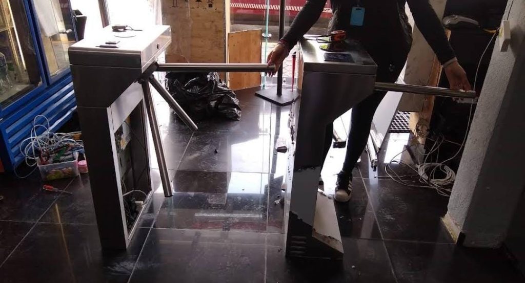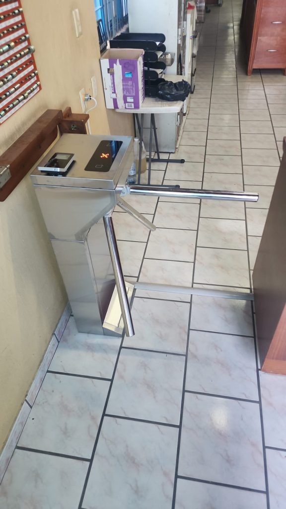 Puertas automatizadas con biometría controlan accesos mediante reconocimiento facial o huella.